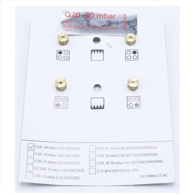 | Дюзи к-т. Предназначението им е за газ G20 при налягане 10 mbar. |